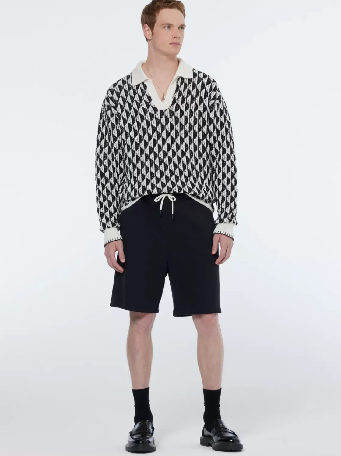 Textured jacquard dropped shoulder long sleeve polo-Scotch & Soda Discount